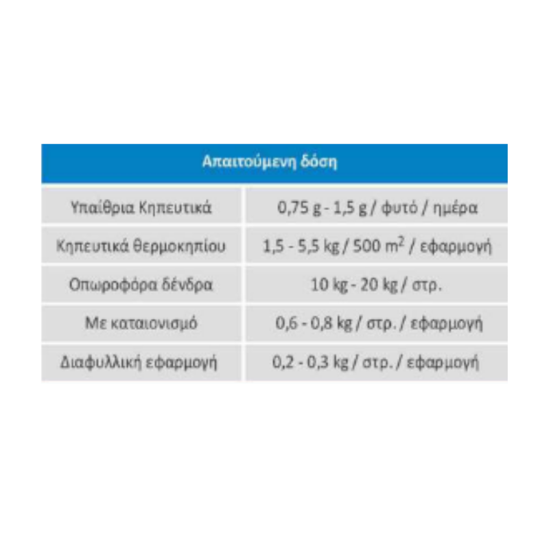 Σύνθεση: 20-20-20 +0,04%Fe +0,004%Cu +0,015%Zn +0,02%Mn +0,02%B +0,002%Mo